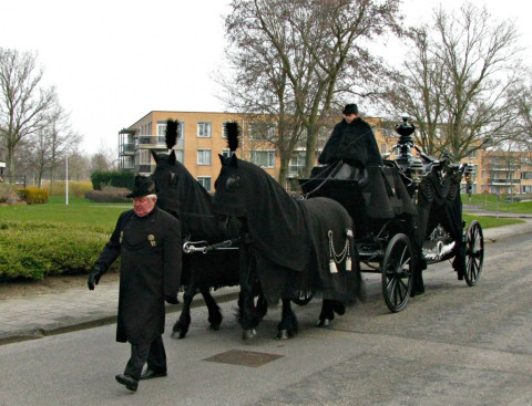 Altijd een paardenman geweest? Of toch meer een type voor de rolls royce? Een ouderweste rouwstoet bestaande uit zwart, grijs of witte rouwauto (cadillac) en een aantal volgauto’s in de zelfde kleur.